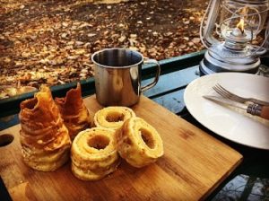 これは3度チャレンジしました。最初は適当な目分量とレシピを見ないで作りました。形や見た目は良かったのですが、甘さが足りずに美味しくありませんでした。2回目はレシピ通りにタネを仕込んで作成。今度はタネの量とバウムの長さを考えずに作った為、相当小さいバウムクーヘンが完成。しかし味は問題ナシ。3度目のチャレンジは長さも考慮して作ったので、ボリューミーな感じのバウムクーヘンが完成しました。水分の掛け合わせなので、目分量で作ってしまうと失敗します。ですので、自宅である程度の下準備をした上、作る時に混ぜるだけにしておいた方が楽です。食後のデザートとしては最高でしたので、また作りたいと思えました。シュガーソースとかかけたらまた美味しいと思います。