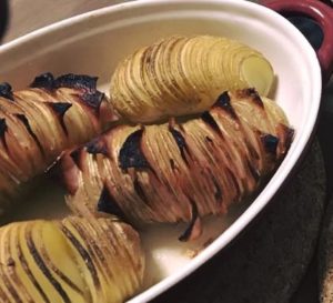 ポテトを薄切りにしてベーコン等を挟んでオーブンする料理です。お手軽な料理でとても美味しいです。これをくるシュラでやったら美味しく出来るのではないかなと思います。