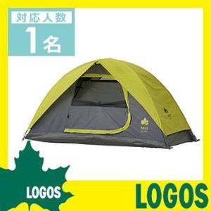 ロゴスの1人用テント。フライシートがテント全面を覆わないので、風通しが良くて熱がこもりにくく快適です。入り口ドアの下側に耐水シートをプラスすることで雨の入り込みを防ぎます。フレーム2本のシンプル構造なので初心者でも設営簡単です。後方に大きな通気口があるのでスムーズな換気が行えます。テント内には小物用ポケットも付いています。